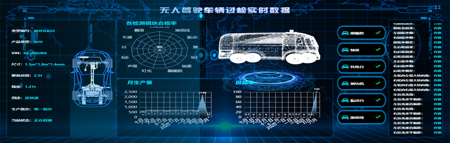 無人駕駛車輛自動化檢測線不僅能滿足傳統車輛檢測項目要求,同時還滿足檢測和標定無人駕駛車輛的轉向系統精度、制動系統精度、驅動控制系統精度,具備多感知傳感器融合系統、檢測數據動態展示及云端管理等一系列專門為無人駕駛車輛打造的功能,成為具備連續量產檢測標定能力的無人駕駛車輛自動化檢測線。?